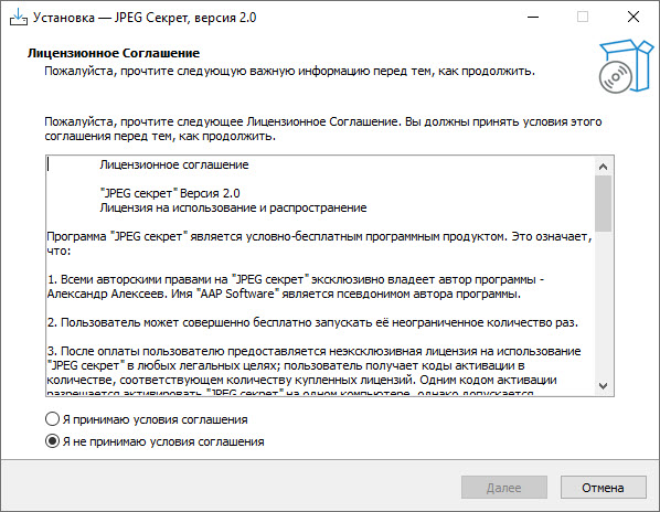 Примите условия соглашения, иначе установка не продолжится.